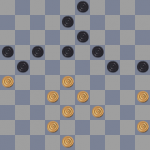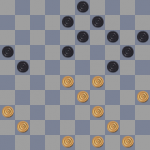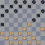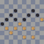 Черные получили выигранную позицию. Сейчас они грозят решающим подрывом: 12-18 и 21-27.